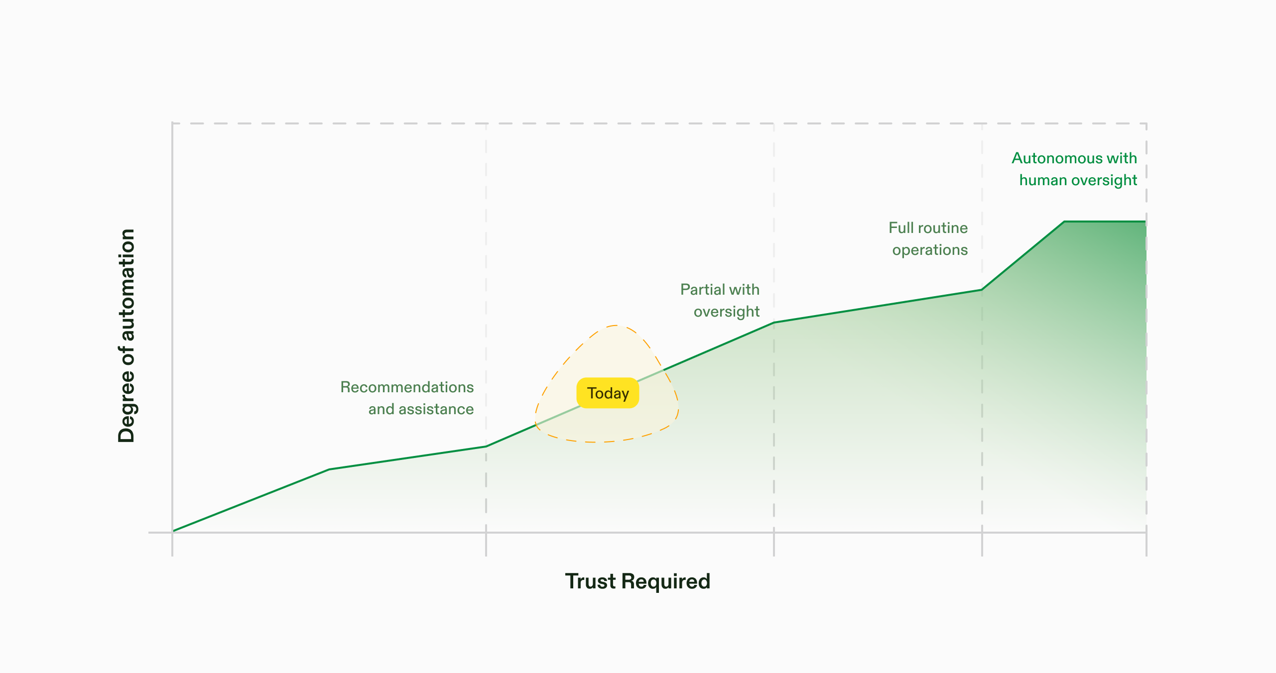 As confidence grows through repeated acceptance, low override rates, or explicit approval, it begins automating certain actions, saving time without sacrificing control. Instead of prescribing rules, systems learn them. Instead of enforcing processes, they reflect organizational preferences.